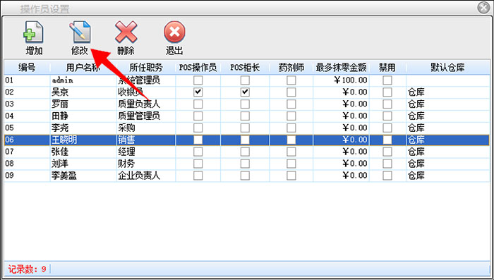 选中想要修改的操作员,点击修改按钮,即可修改该操作员信息。