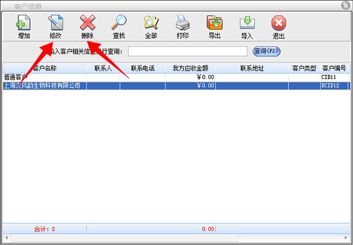 倘若要删除或者修改该客户信息,可以选中要操作的客户,点击修改或删除按钮,即可完成相应操作。