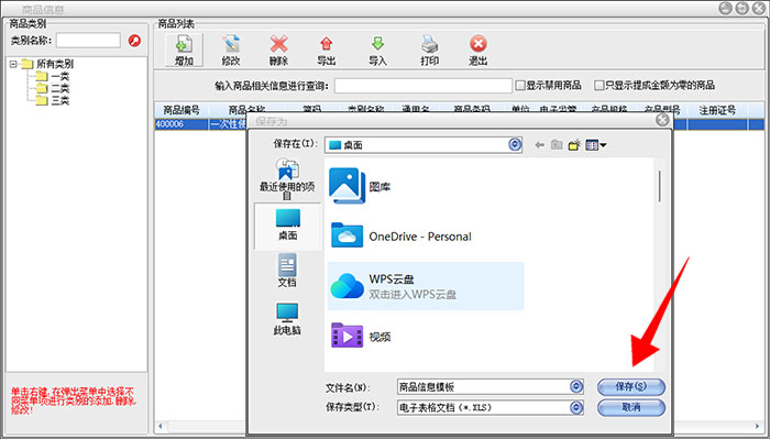 首先,我们先在系统中的商品管理界面,添加一个商品信息,导出名为“商品信息模板”的Excel模板。