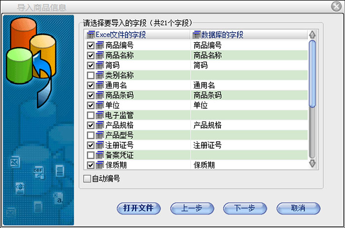 Excel表格整理好后,我们点击导入按钮,选择类别,点击下一步,点击“打开文件”,选择那个整理好的Excel表格, Excel文件的字段会和系统数据库的字段自动对应,点击下一步,点击保存,提示导入成功,这时候系统就已经成功导入商品信息了。